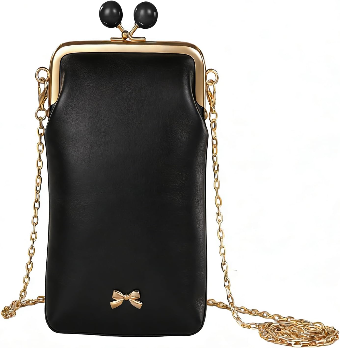 Small Leather Chain Crossbody Cell Phone Purse for Women Designer Mini Wallet Kiss Lock Cute Shoulder Pouch