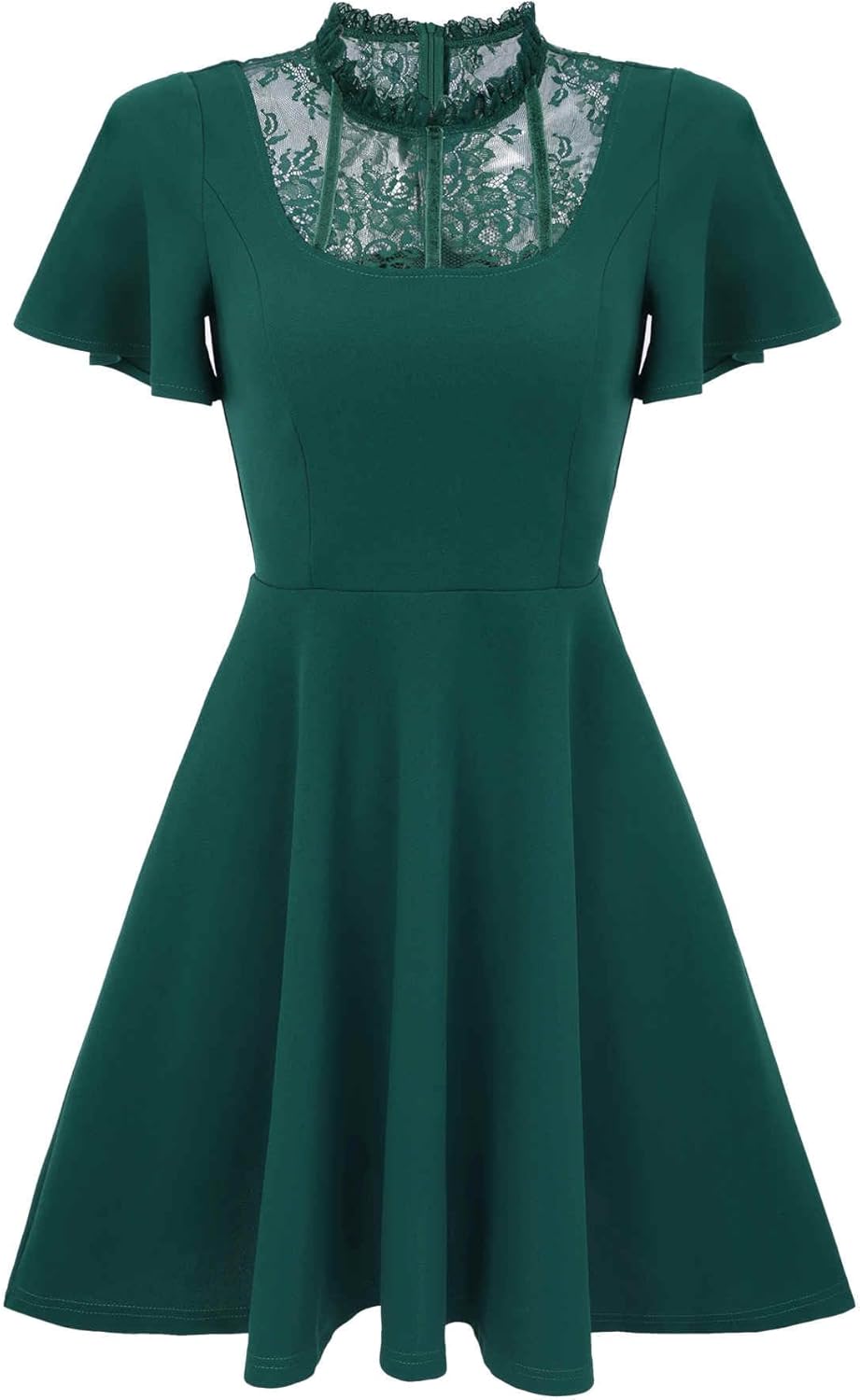 Allegra K Gothic Dress for Women Halloween Party Dress with Lace Mock Neck A-Line Vintage Cocktail Dresses