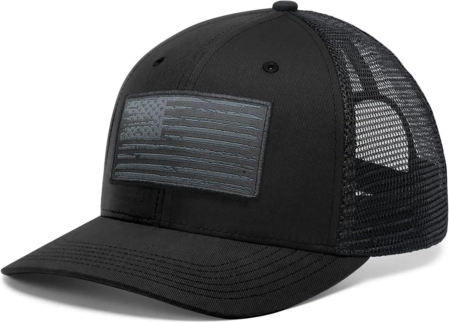 American Flag Hat, Baseball Cap for Men Women, Adjustable Snapback Hats USA Flag Trucker Hat Black