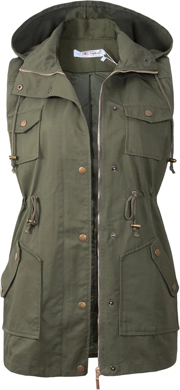 BBX Lephsnt Womens Utility Vest Drawstring Waist Military Sleeveless Jacket