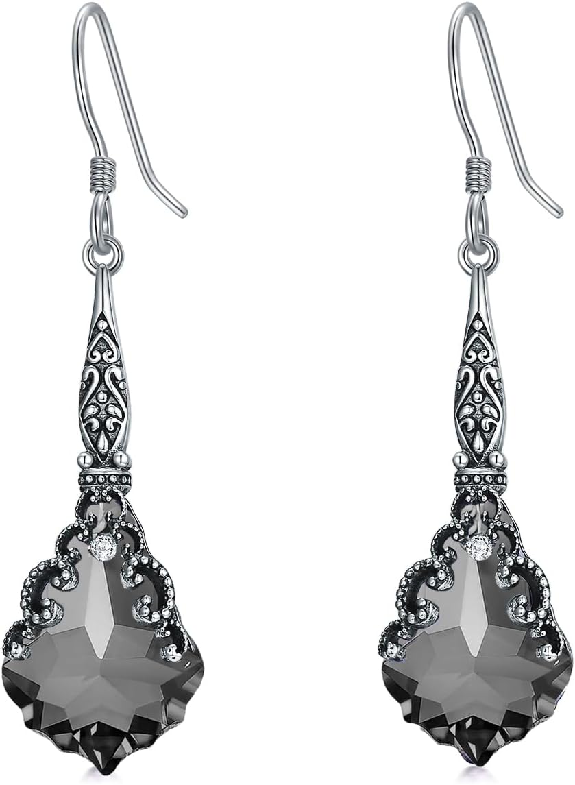 925 Sterling Silver Vintage Oxidized Victorian Leverback Dangle Drop Earrings with 16mm Purple Blue Crystal from Austria Anniversary Jewelry Gifts for Women