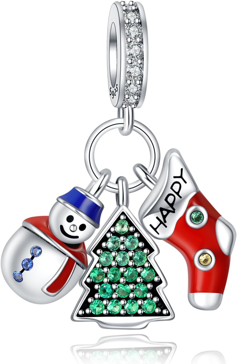 925 Sterling Silver Snowman Socks Christmas Tree Three In One Women'S Bracelet Pendant Necklace Pendant New Year Holiday Jewelry Gift Family And Friends