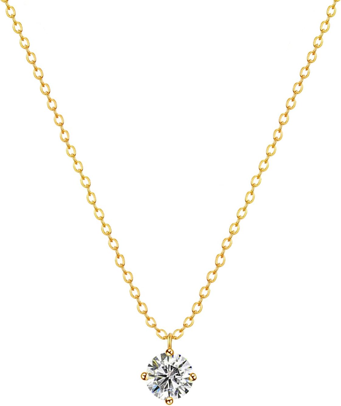 Zeffy Diamond Necklaces for Women, Dainty Gold Necklace 18k Gold Plated Layered Necklaces Simple Gold CZ Diamond Pendant Necklaces for Women Trendy Jewelry Gifts for Girls