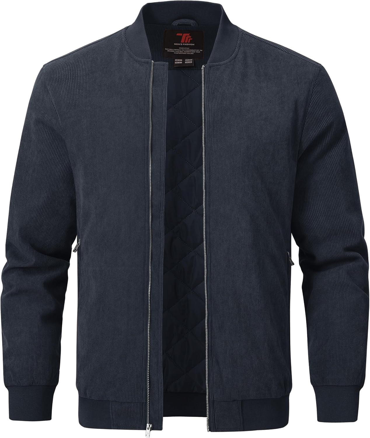 TBMPOY Men's Corduroy Bomber Jacket Full Zip Quilted Lined Fall Casual Fleece Warm Winter Coat with 3 Zipper Pockets