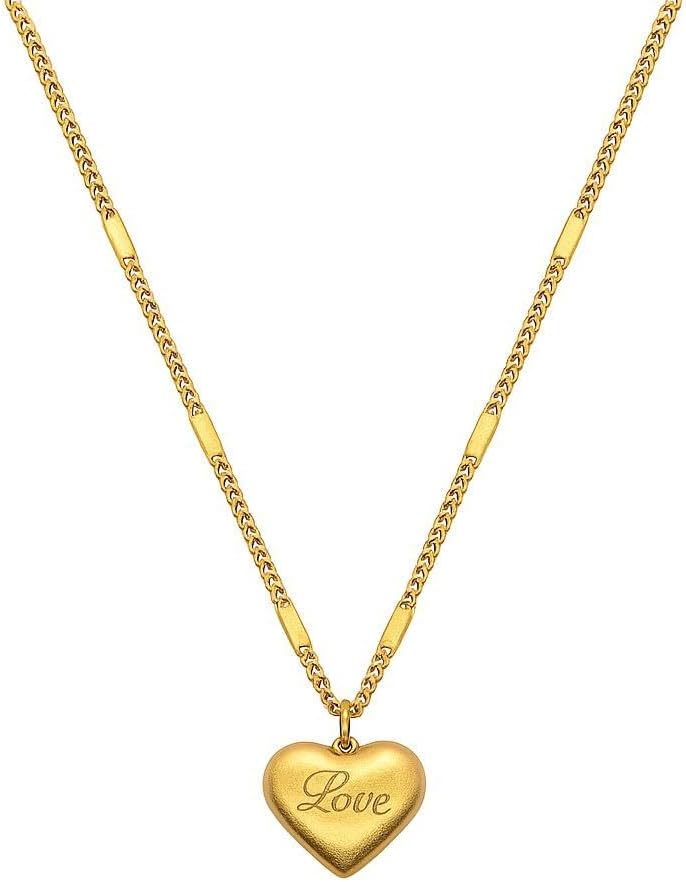 18K Gold Plated Heart Pendant Necklace for Women – Adjustable Cable Chain with Bar Links, Hypoallergenic and Tarnish Resistant, Romantic Jewelry Gift for Anniversary, Birthday, Valentine’s Day with Gift Box