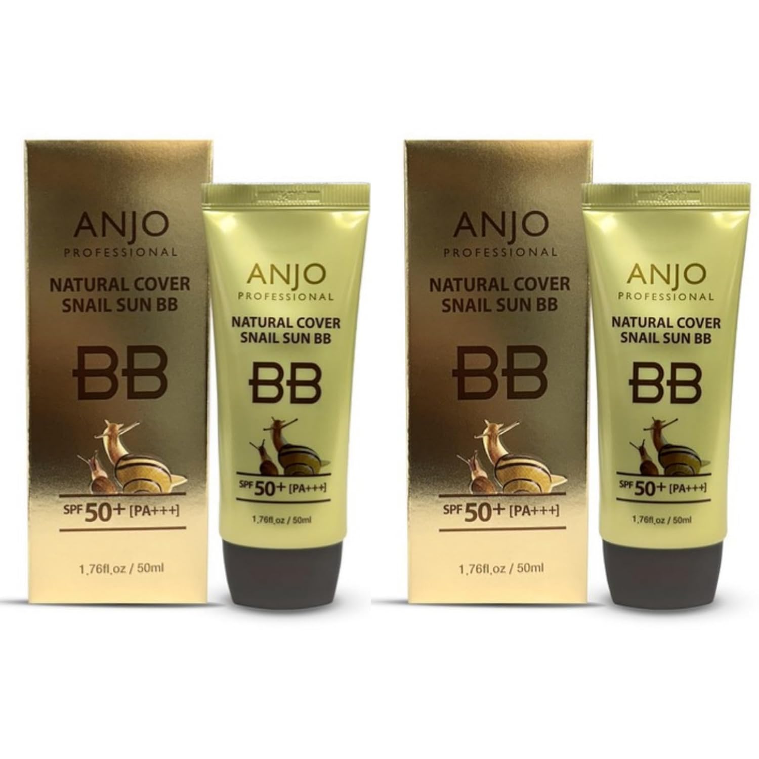 Anjo Snail BB Cream Korean 2 Pack 50ml - Korean BB Cream Professional Skincare - Lightweight, Non-Greasy Mucin Moisturizer - Natural Cover Foundation for Even Skin Tone
