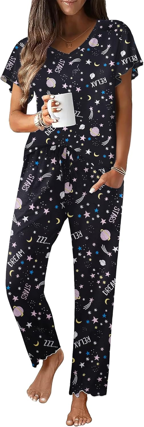Ekouaer Pajama Sets Womens Short Sleeve Sleepwear Long Pants Pjs 2 Piece Lounge Set Soft Nightwear S-XXL