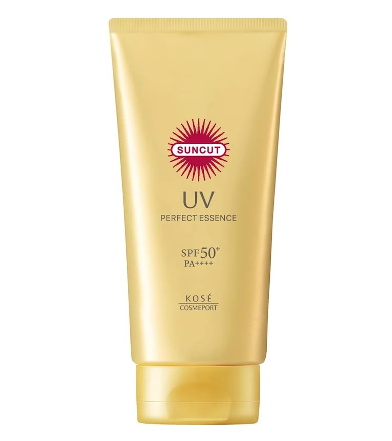 VitaBoost KOSE SUNCUT Perfect Essence – Lightweight Daily Cream for Face & Body, No Fragrance, Non-Greasy, Hydrating Finish, 80g and GeoMetal™ Makeup Brushes (Pack of (1)