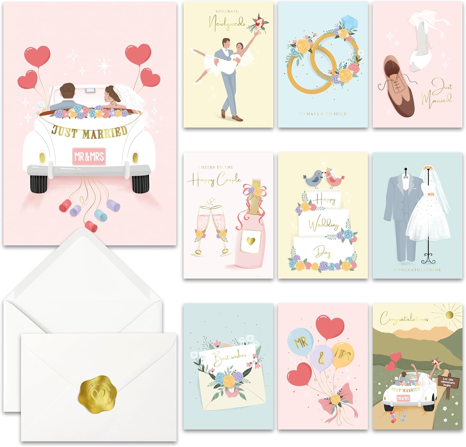 - Wedding Gift Card: Collection of 10 gold foil wedding card invitations, each with a distinct design that speaks of love, joy and eternal commitment. From the elegance of traditional motifs to the fresh vibrancy of modern art. Polite, luxurious and sophisticated for wedding parties, engagement ceremonies, newlyweds, and wedding congratulations, etc.
