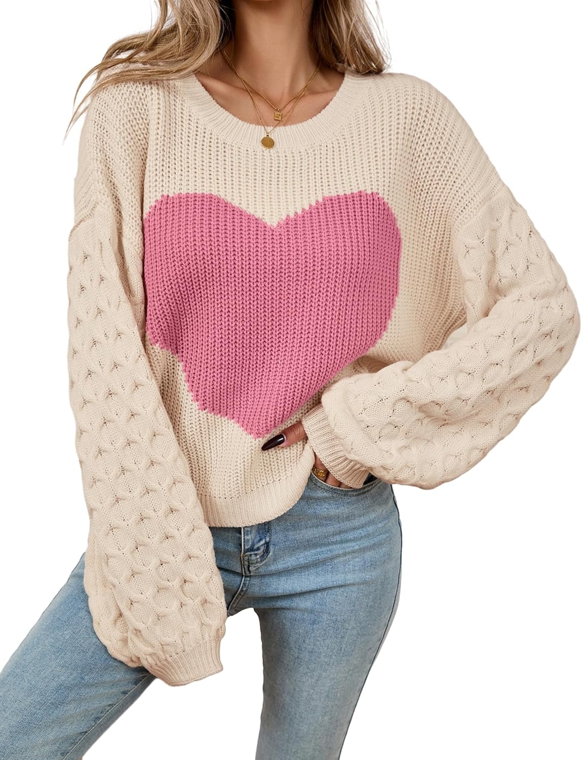 Womens Valentine Heart Sweater 2026 Valentines Day Trendy Cute Oversized Long Sleeve Pullover Sweaters