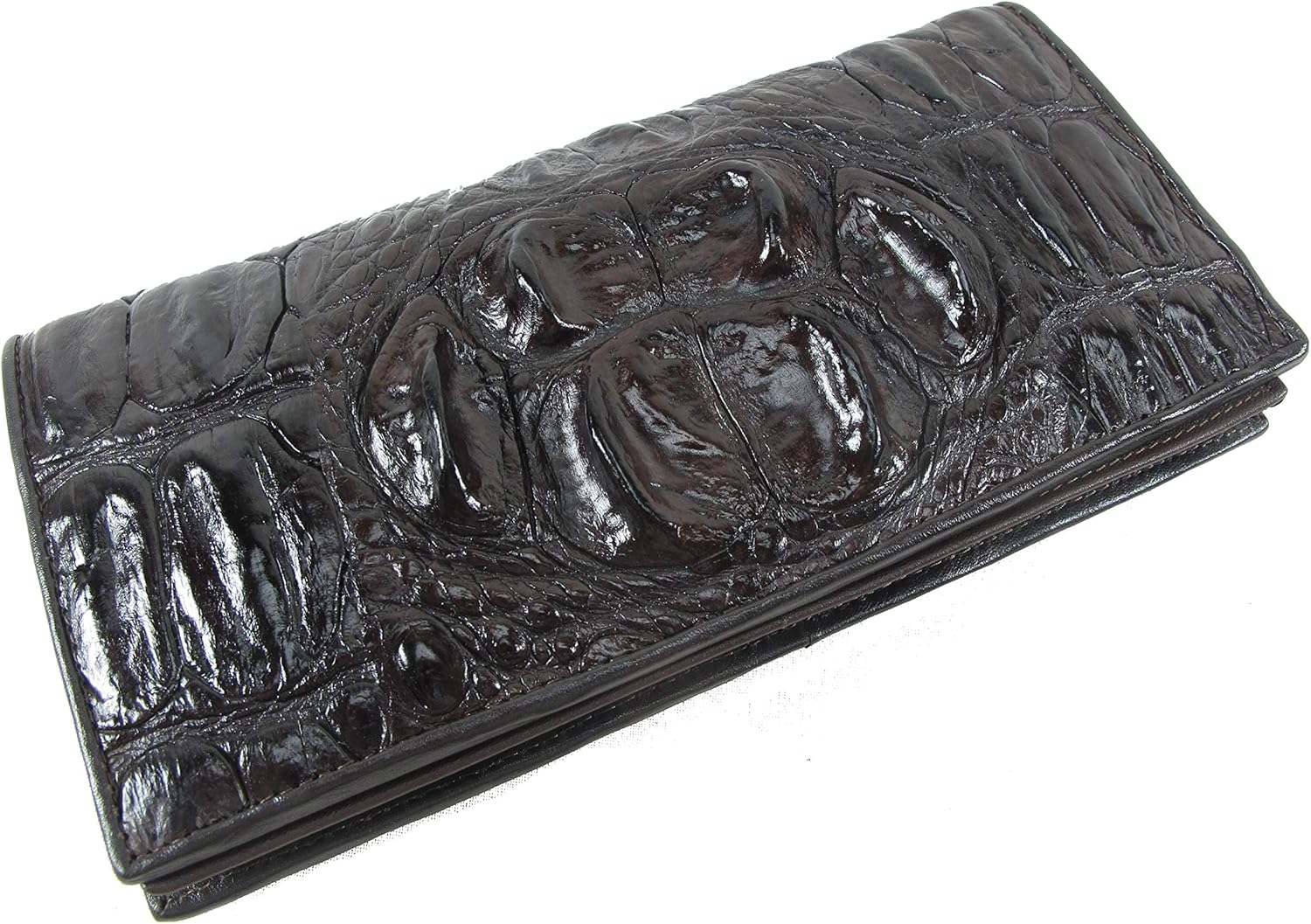 Genuine Crocodile Alligator Hornback Skin Leather Checkbook Long Wallet (Chocolate Brown)
