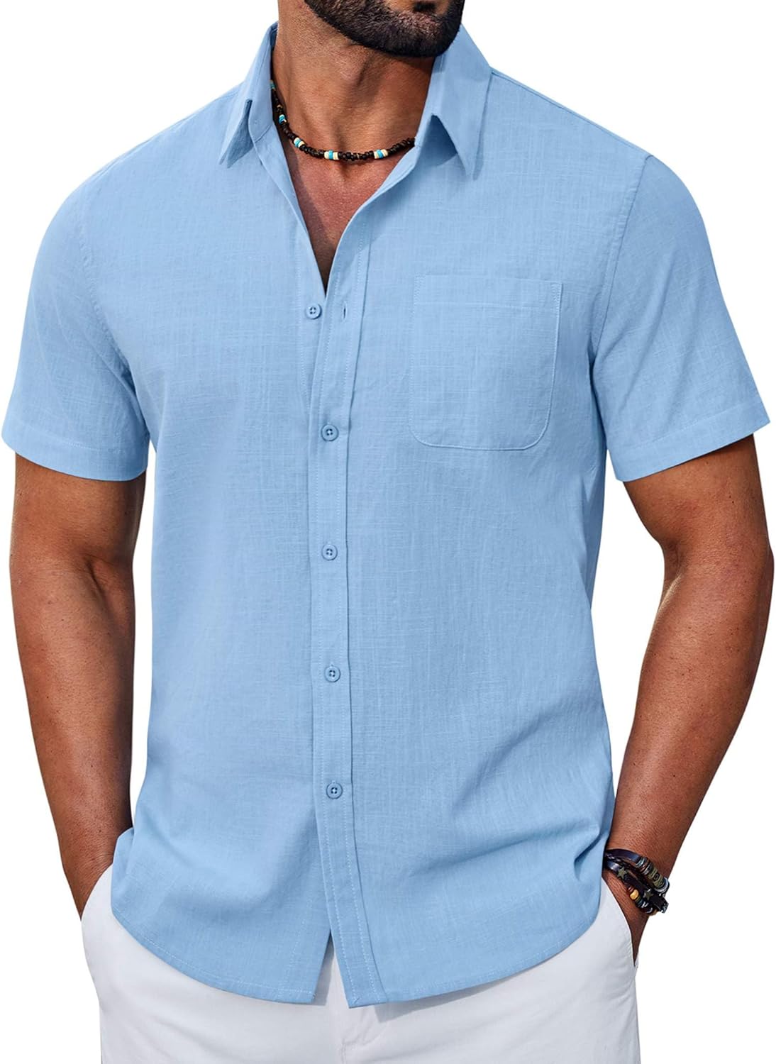 COOFANDY Mens Button Down Shirt Short Sleeve Casual Stylish Cotton Shirts Linen Textured Summer Beach Wedding Shirt