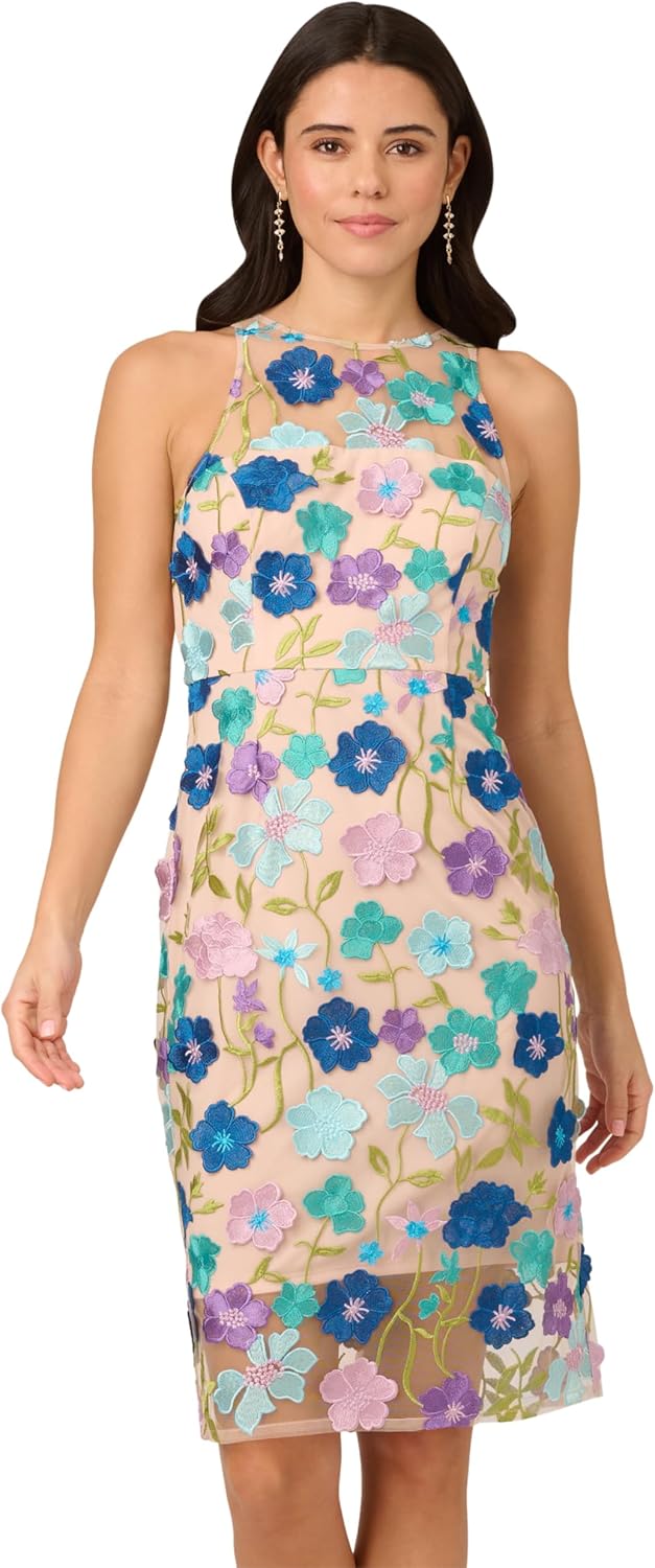 Adrianna Papell Womens Embroidered Column Midi Dress