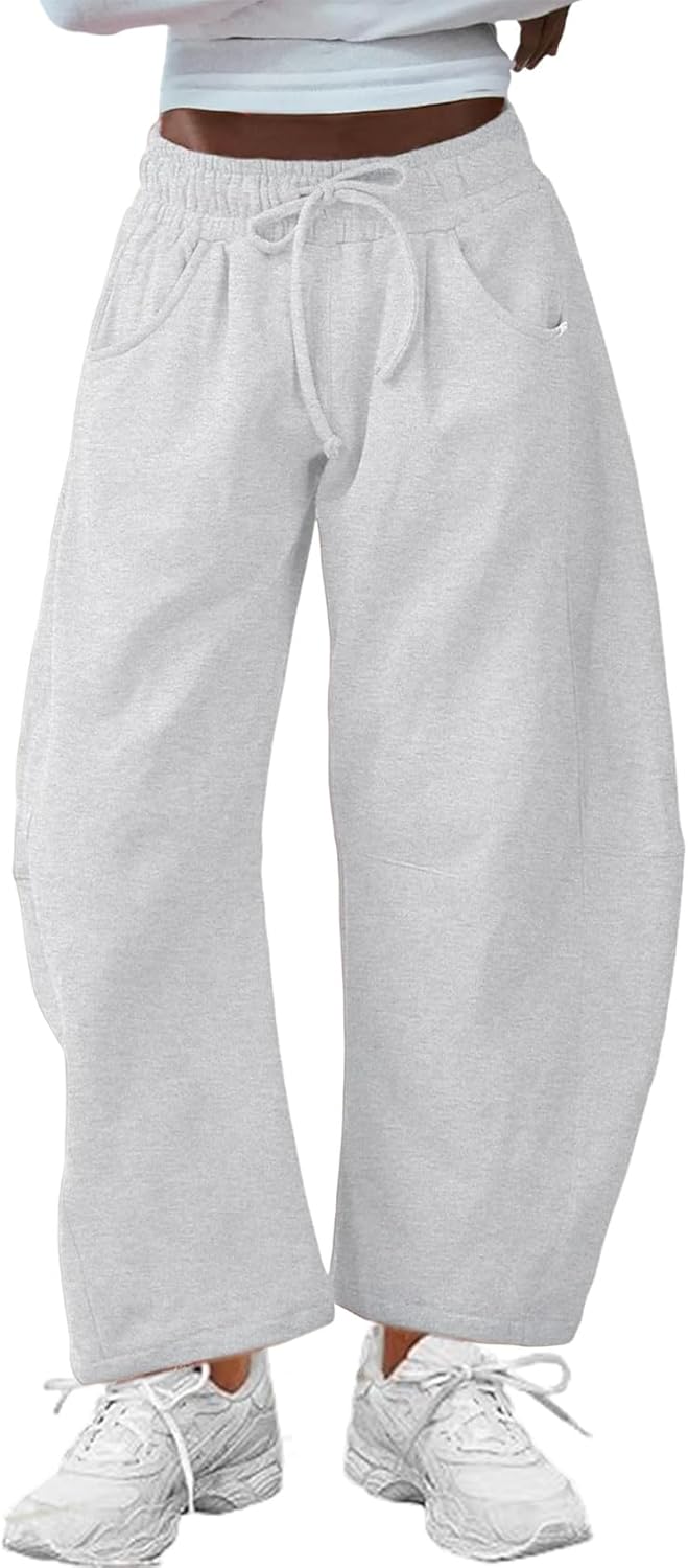 Yimoon Womens Barrel Leg Sweatpants Drawstring Elastic Waist Wide Leg Pants Baggy Lounge Pants with Pockets