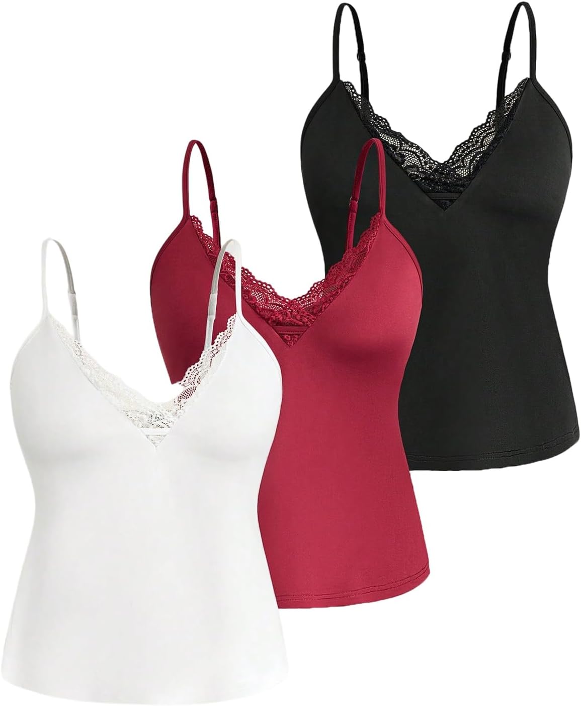 WDIRARA Women's Plus Size 3 Pack Cami Top Lace Trim V Neck Camisole Tops