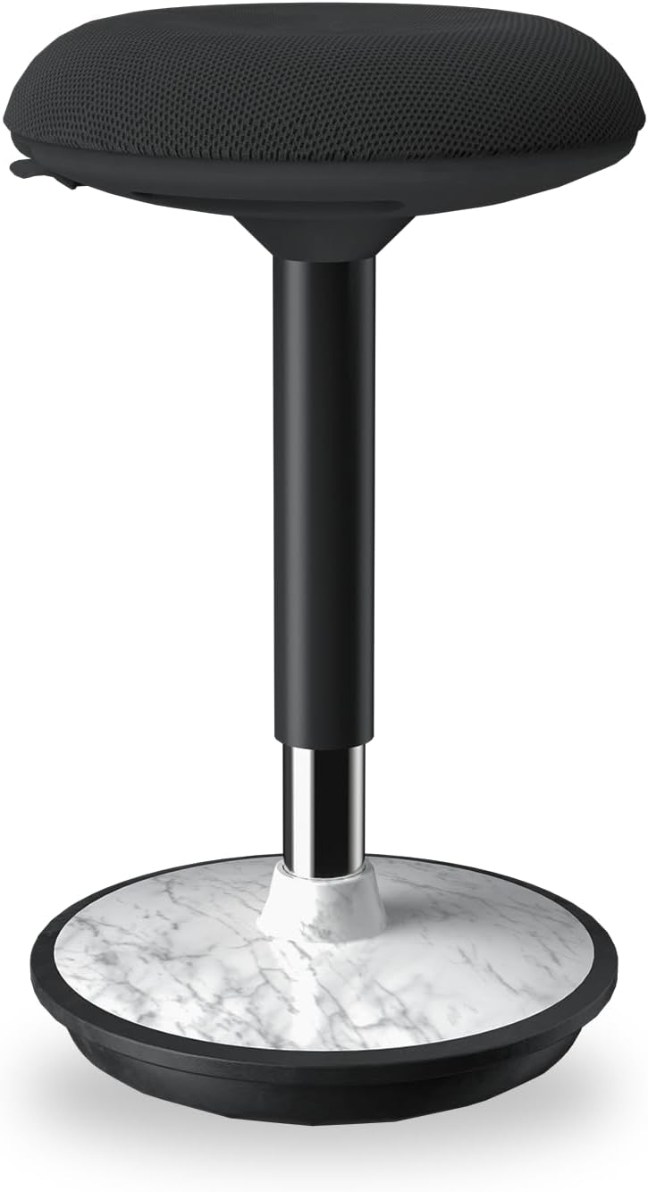 - EASY TO INSTALL AND PORTABLE – Assemble this sit-stand stool quickly without tools. The ergonomic handle makes the wobble stool easy to move and use anywhere. Its stylish marble-textured base and modern design blend seamlessly into any office or home workspace