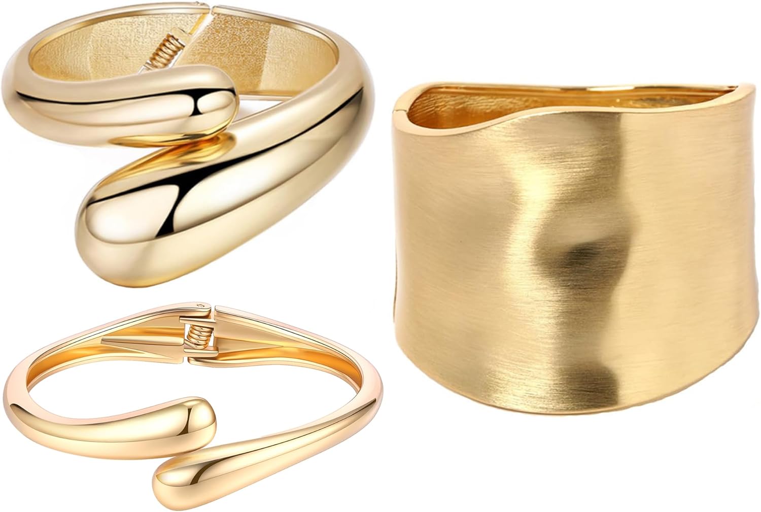 SONNYX Gold Chunky Bangle Bracelets Trendy Hinged Cuff Open Wide Chunky Gold Bracelet Hammered Wrist Cuff Wrap Bracelet for Women