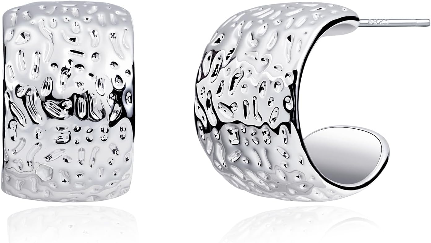 Silver Textured Huggies Hoop Earrings for Women, Hypoallergenic Sterling Silver Jewelry for Women with Matte Finish Design