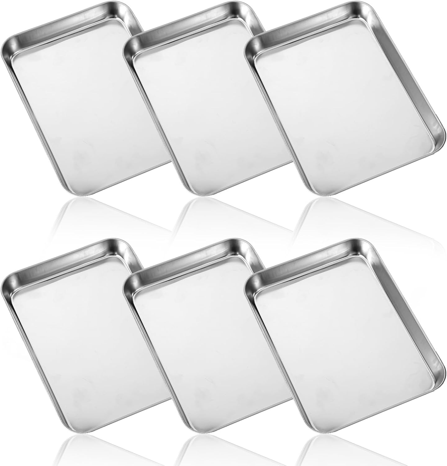 6 Pcs Baking Sheet Stainless Steel Cookie Small Metal Sheet Pans Professional Rectangle Oven Trays Kitchen Baking Cooking Oven and Toaster, Dishwasher Safe