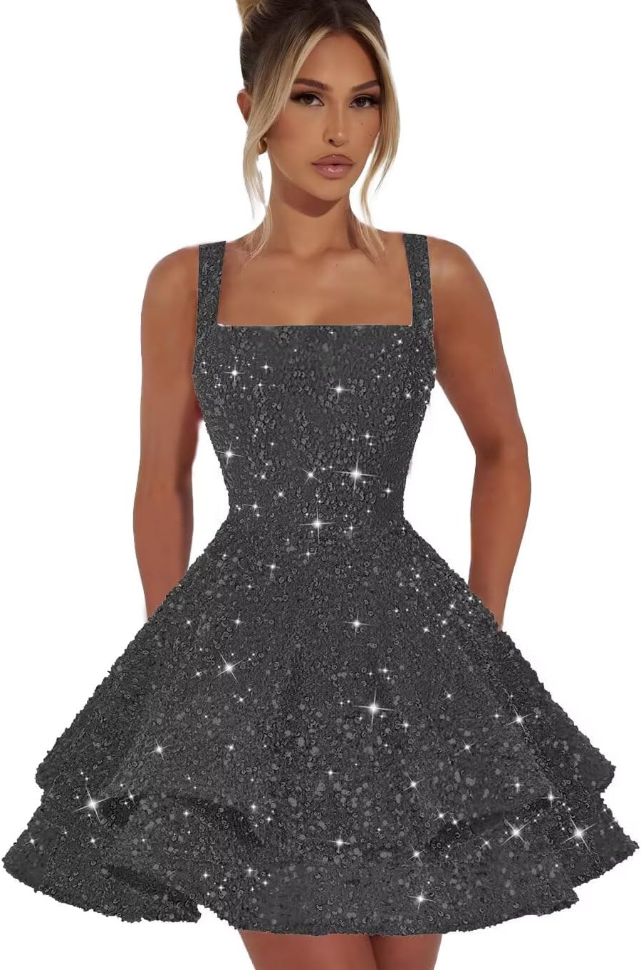 Short Homecoming Dresses for Teens Sparkly Sequin Spaghetti Strap Short Prom Dress Sweet 16 Cocktail Party Gown