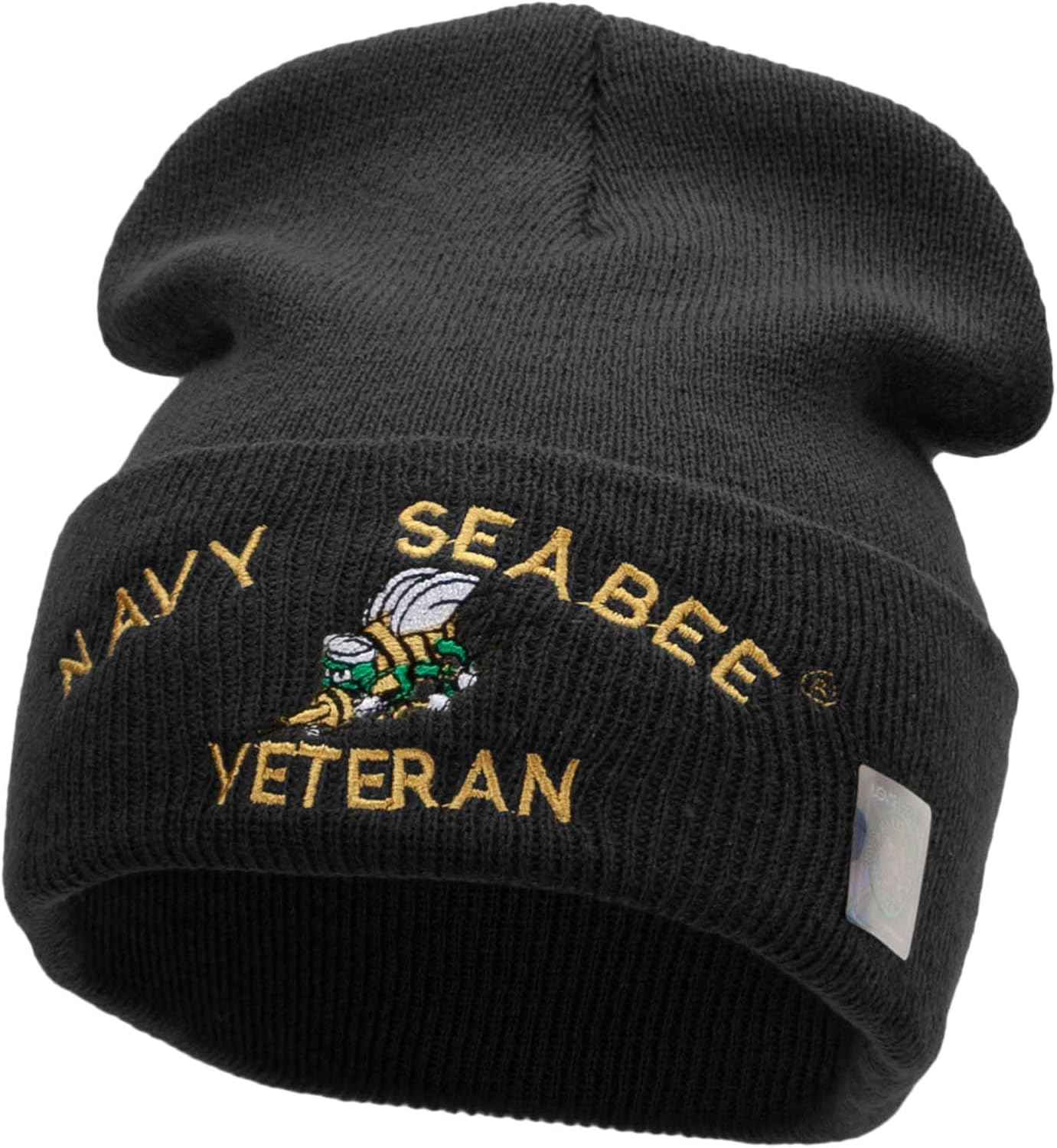 US Navy Seabee Veteran Military Embroidered Long Beanie Made in USA