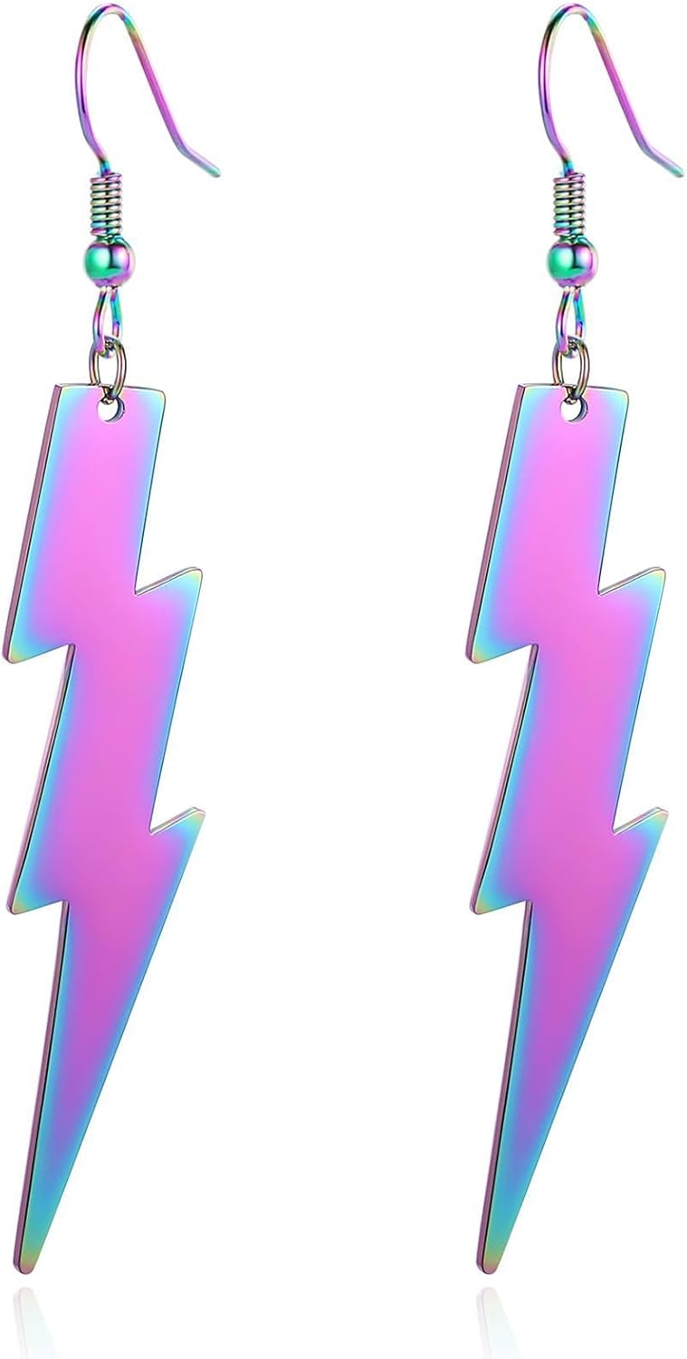 ONLYJUMP Neon Lightning Bolt Drop Earrings for Women 80s 90s Lightweight Vintage Minimalist Stainless Steel Geometric Statement Earings 80's Retro Party Jewelry Gifts