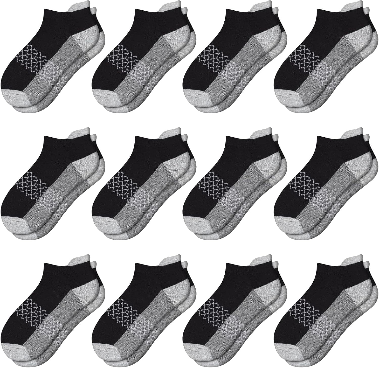 12 Pairs Boys Socks - 4-6, 6-8, 8-10 Years Old - Ankle Athletic Low Cut Socks - Half Cushioned Cotton