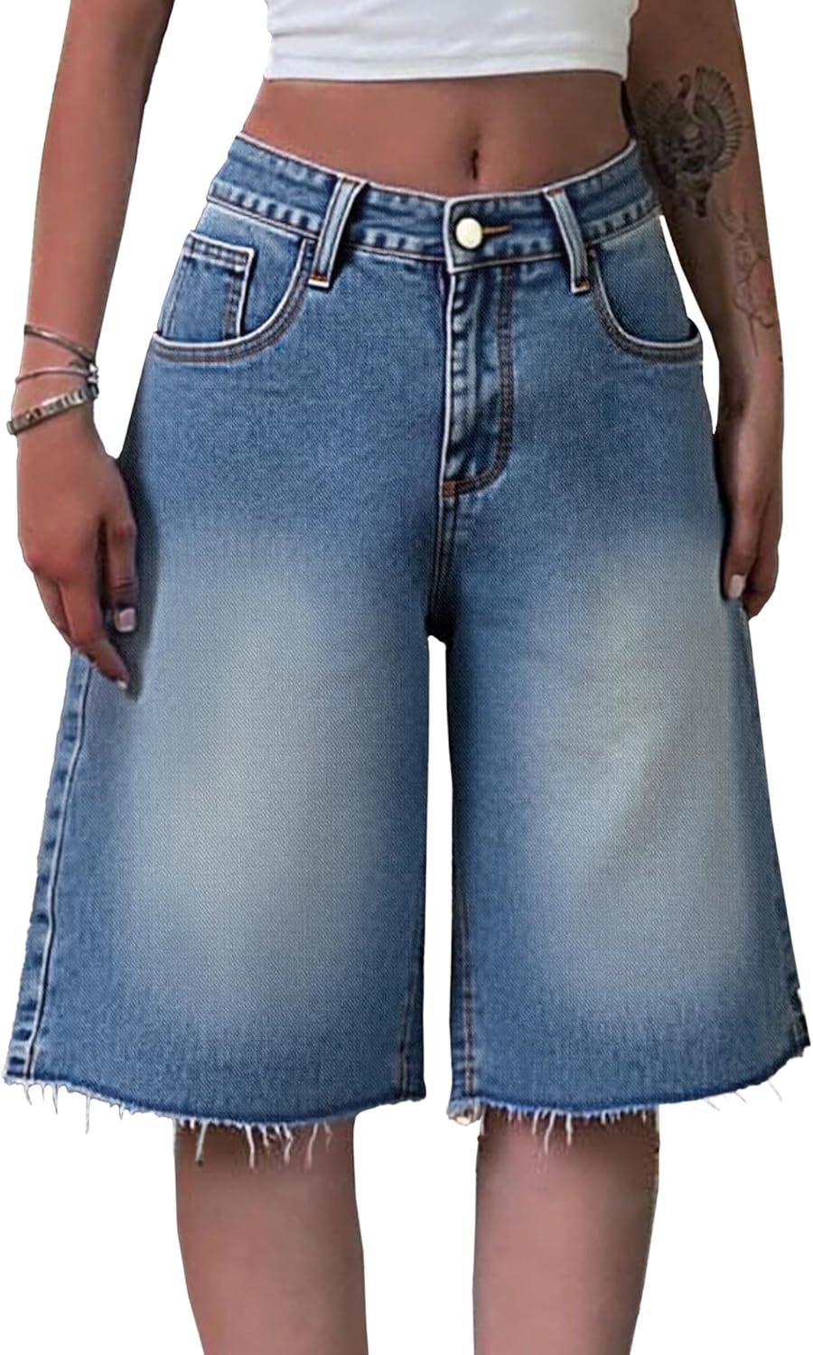 EMMIOL Women Jorts Baggy Jeans Jorts Outfits Mid-Low Waisted Denim Y2K Shorts Summer Hot Short Pants Streetwear