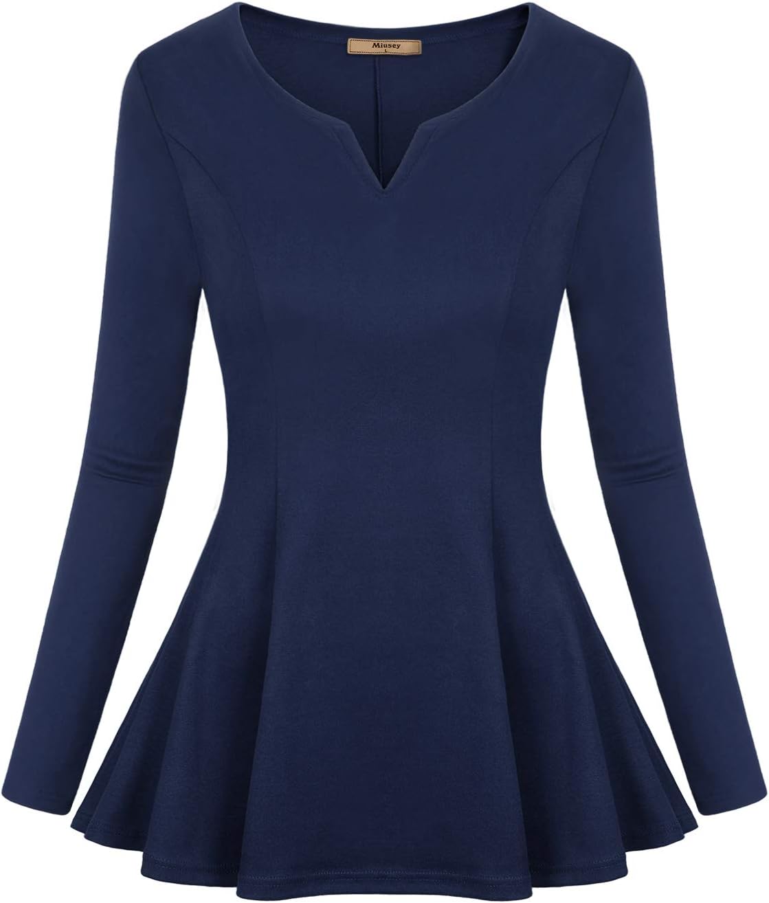 Miusey Women Long Sleeve Peplum Tops V Neck Pleated Fitted Ruffle Tunic Blouse for Hiding Belly