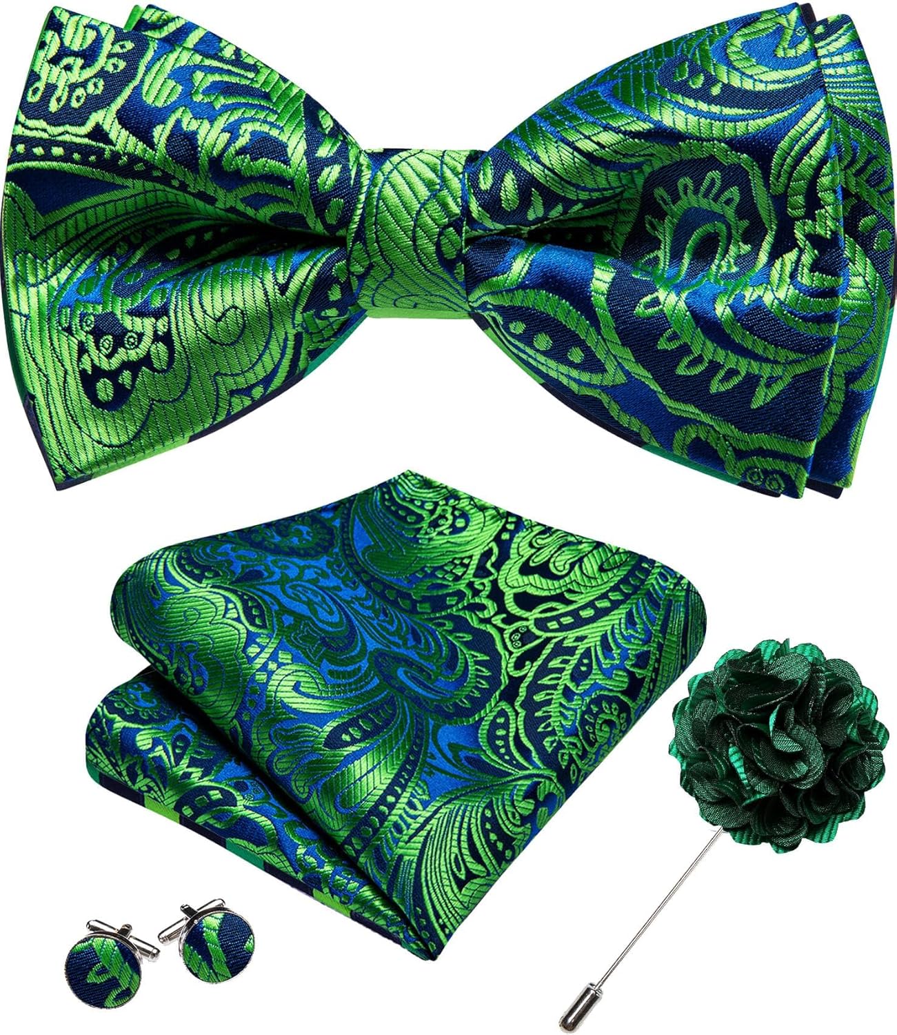 YOHOWA Mens Bow Tie Set Paisley Coloful Pre-tied Bowties Adjustable with Handkerchief Cufflinks Wedding Prom Party