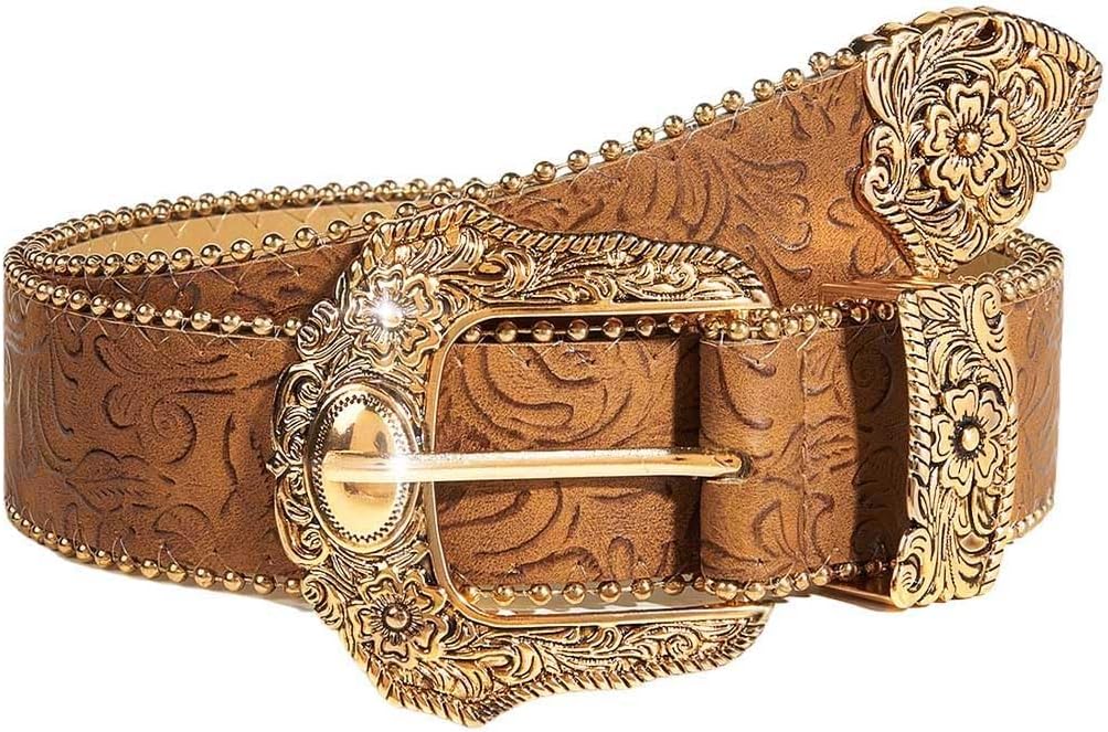 Brown Western Belt for Women Cowgirl Country Leather Belt for Jeans Pants