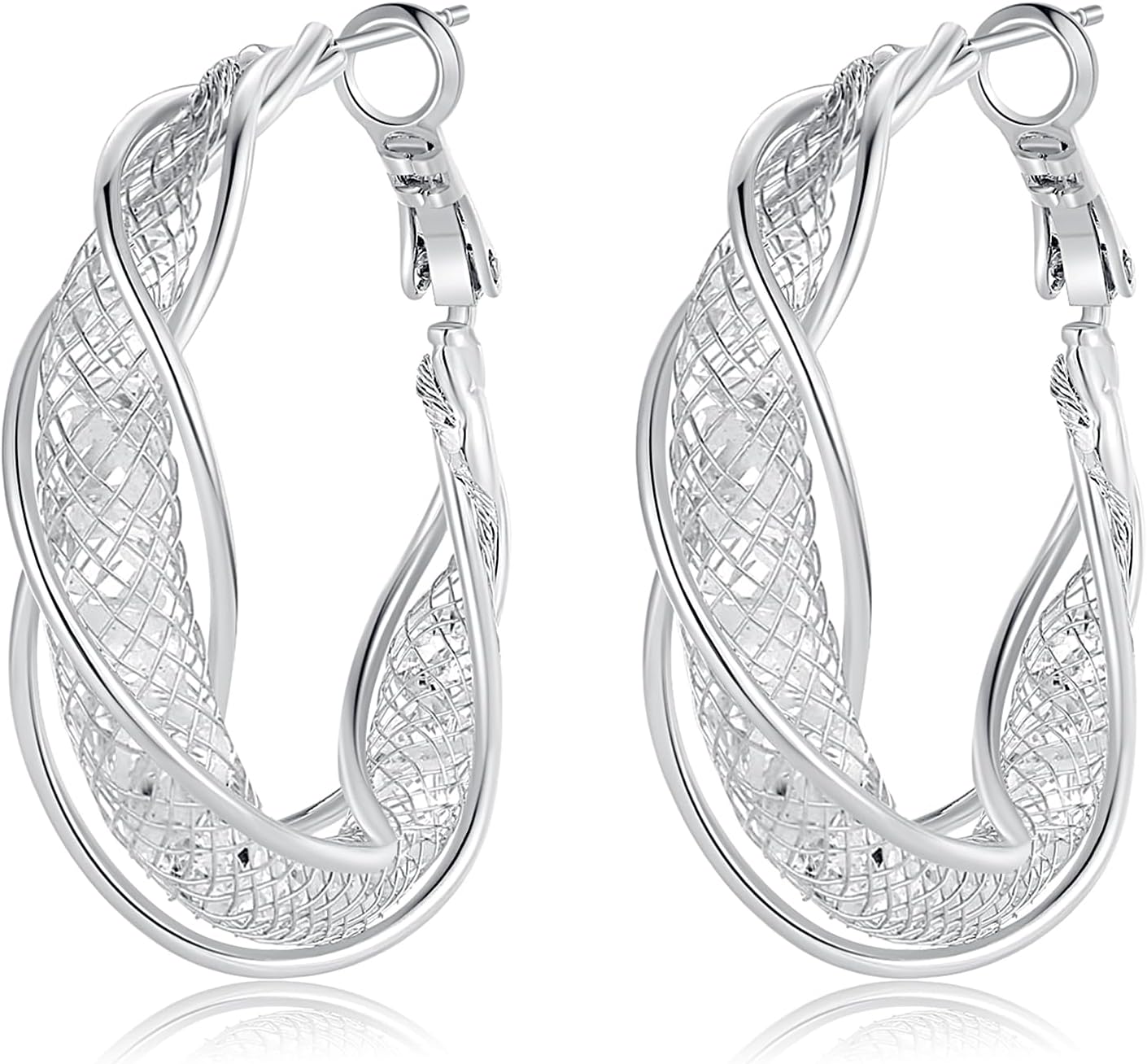 18K Gold Plated Filigree Earrings for Women, Chunky Gold Twisted Hoop Earrings, Disco Earrings for Women,Cubic Zirconia Hoop Dangle Elegant Earrings