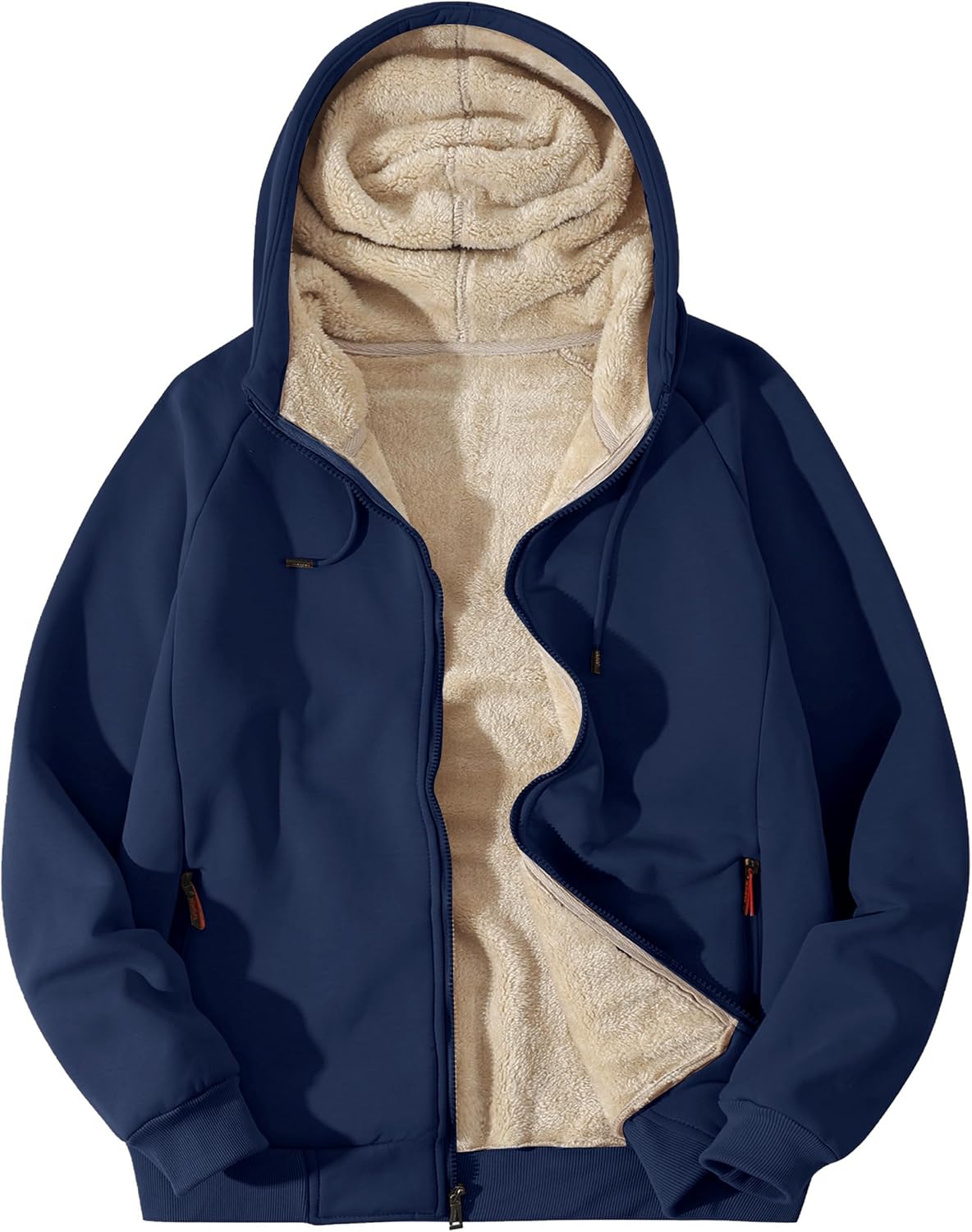 Flygo Sherpa Hoodies for Men Zip Up Winter Fleece Lined Hooded Sweatshirt Heavyweight Warm Jackets