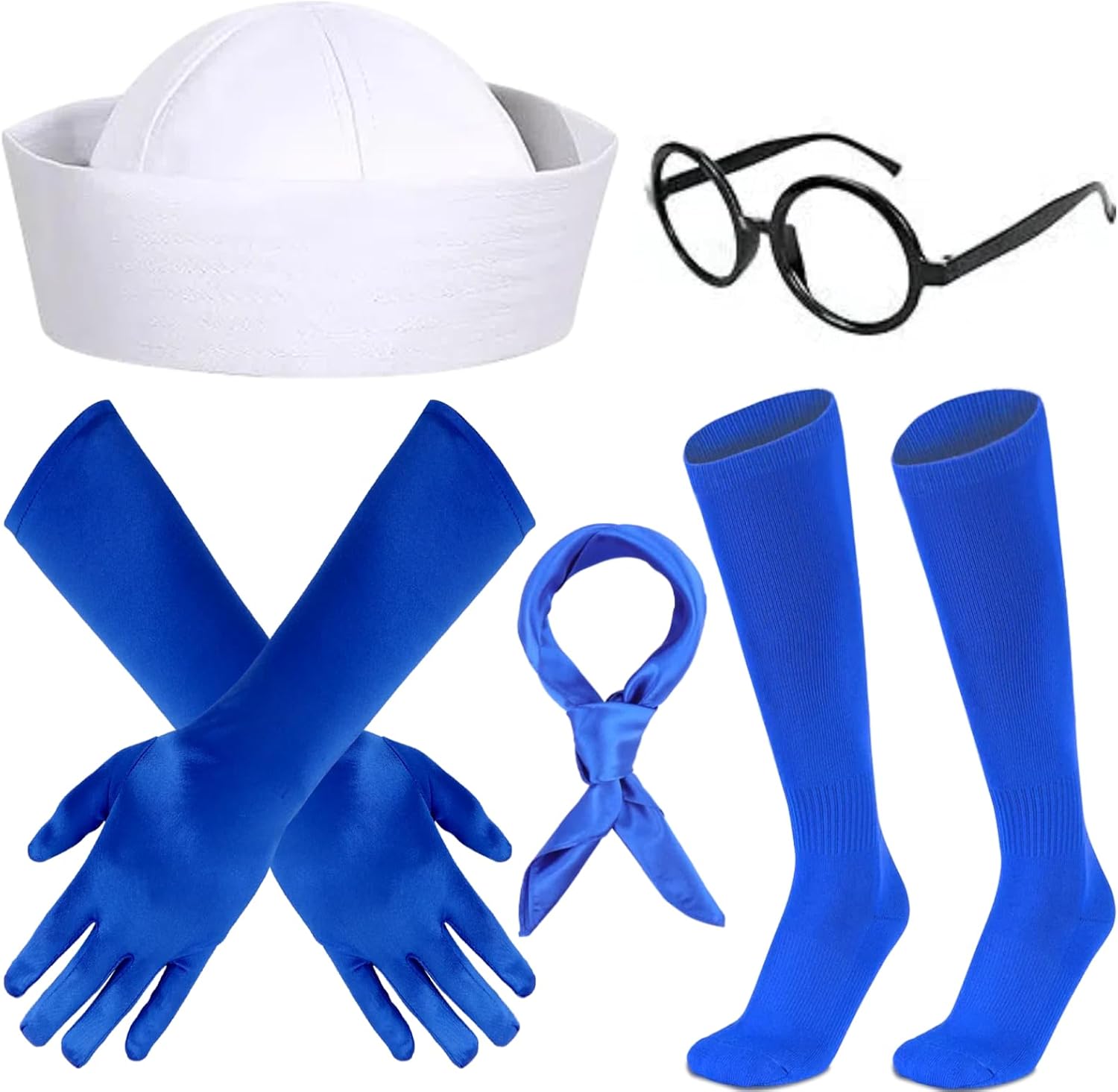 Yotako 5 PCS Halloween Sailor Costume Set – Includes Sailor Hat Scarf Gloves Socks & Glasses for Men & Women Halloween Dress Up Party Cosplay Ideal Gift