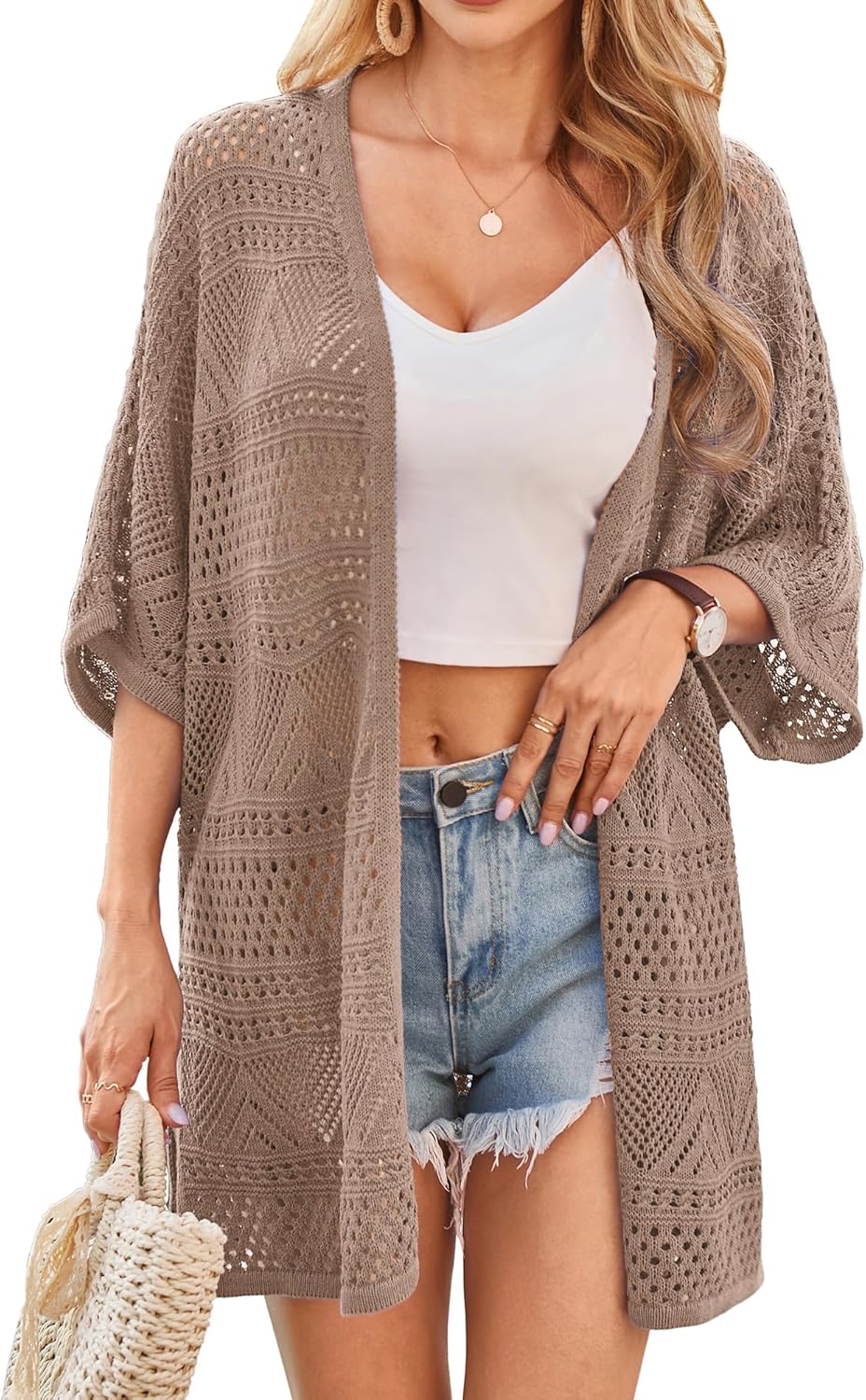GRACE KARIN Womens Summer Short Sleeve Crochet Cardigan Sweaters Lightweight 2026 Oversized Knit Boho Kimono Cardigans