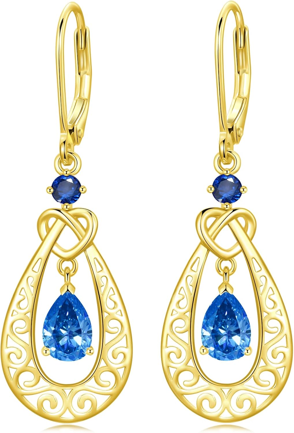 Teardrop Birthstone Dangle Drop Earrings Sterling Silver Infinity Filigree Leverback Earrings, Infinity Love Birthday Anniversary Jewelry Gifts for Her Women Mom Wife
