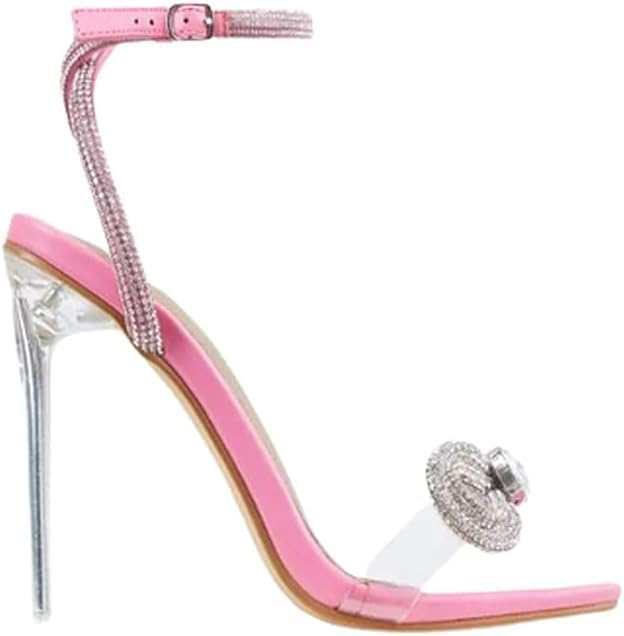 LEMONADE Rhinestone Clear High Heel Sandals for Women Suagr coated Pink 6.5