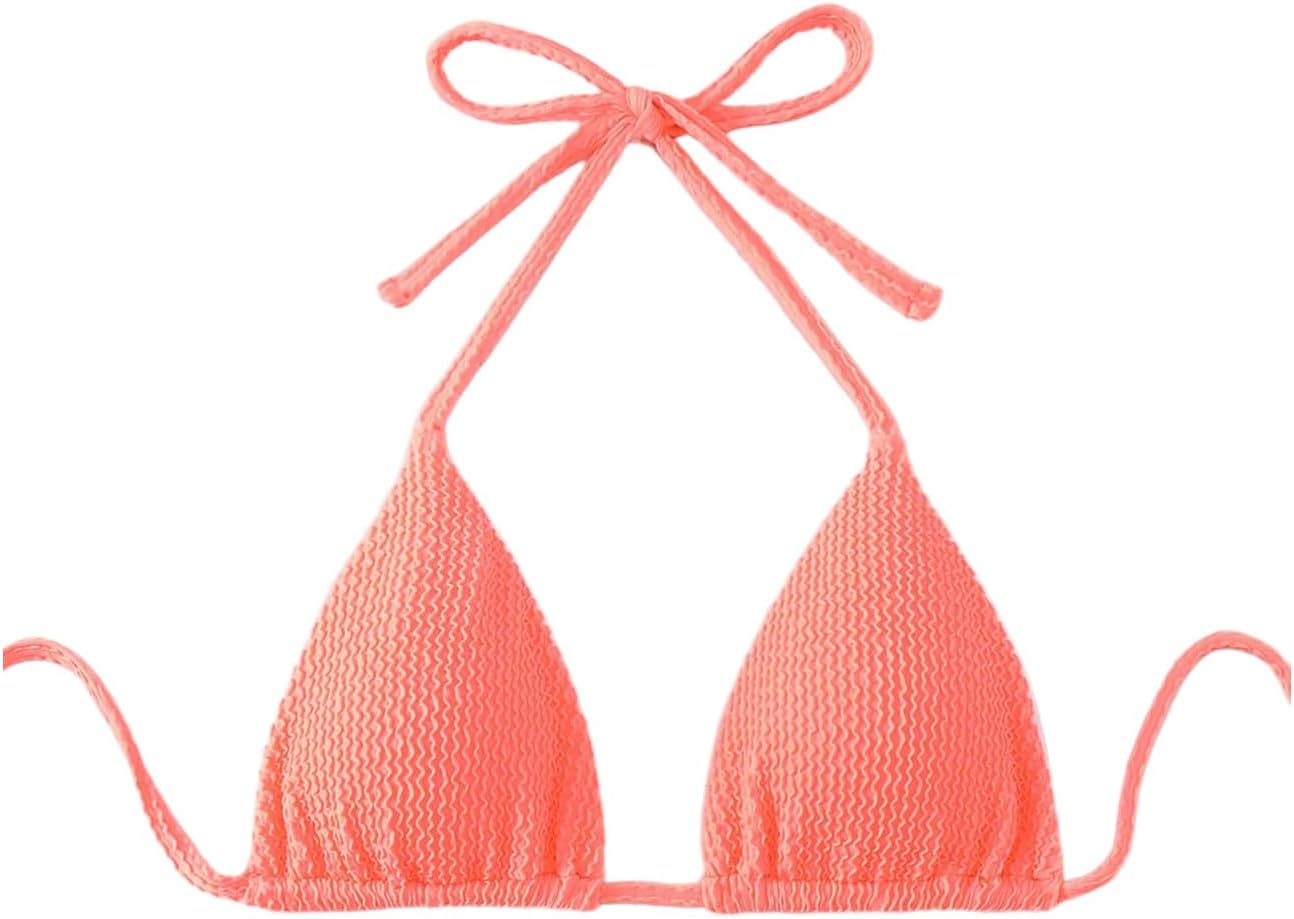 SHENHE Women's Triangle Halter Bikini Top Floral Tie Back Smocked Cute Swimsuit Top