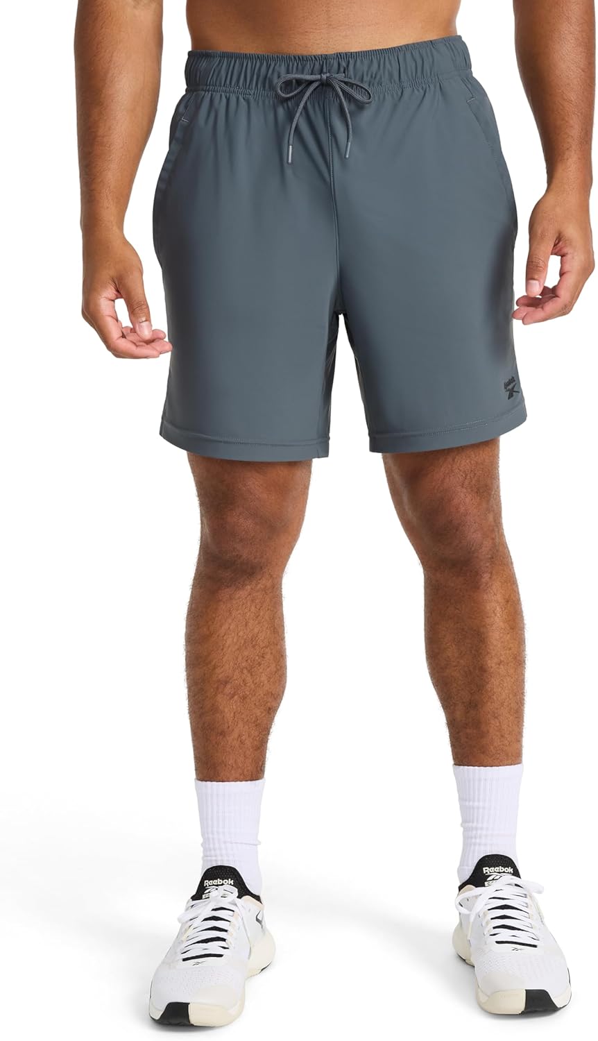 Reebok Mens Pace Training 7” Short, Standard Fit, Lightweight Stretch Recycled Nylon Fabric