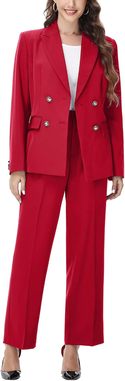 Lamgool Womens 2 Piece Double Breasted Pant Suit Business Professional Blazer Outfits for Work Office