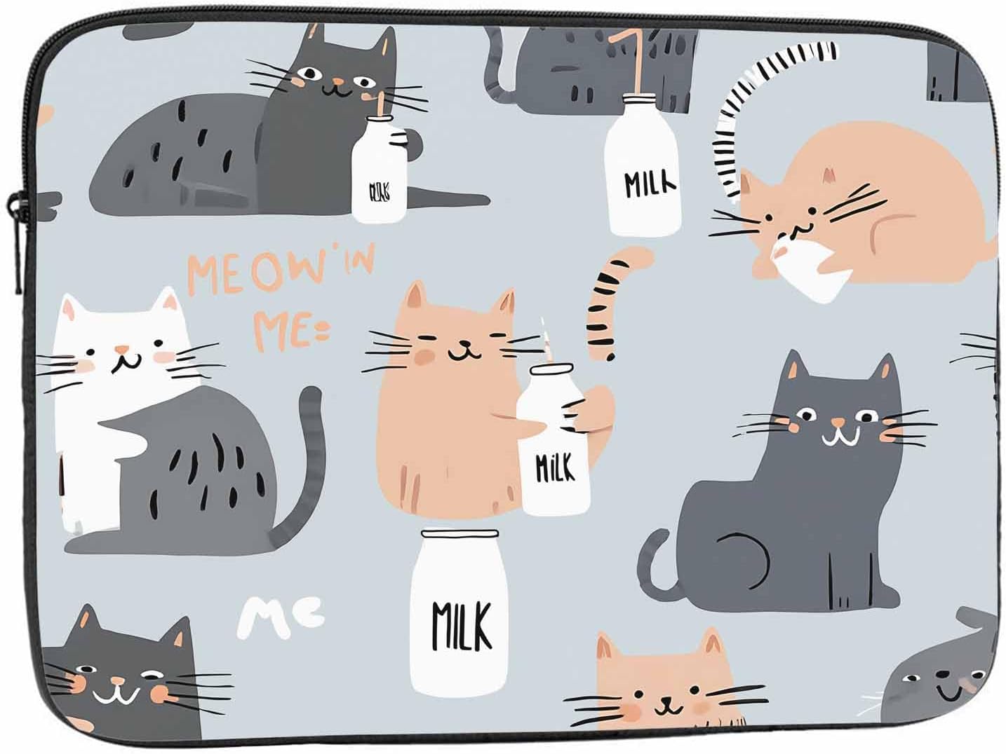 Laptop Sleeve Bag 15.4 15.6 Inch,Modern Cats Funny Cat Grey Protective Polyester Computer Cases Laptop Cover Briefcase Bag Tablet Travel Cover