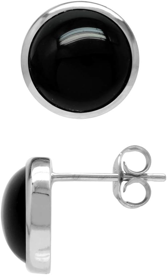 Silvershake 10mm Genuine Round Shape Black Onyx White Gold Plated 925 Sterling Silver Stud Post Earrings