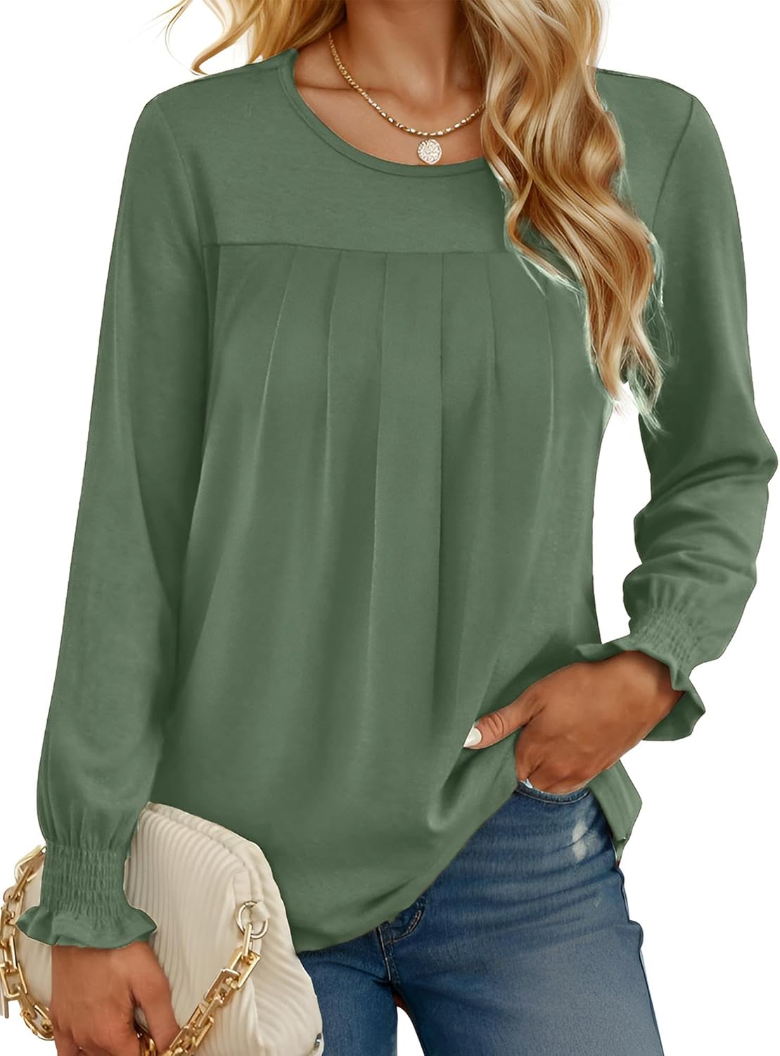 Womens Casual T-Shirt with Ruffle Detail Lantern Sleeves Long Sleeve Blouse