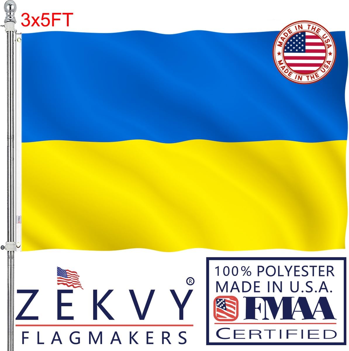 Ukrainian Flag 3x5 Outdoor Made in USA - Double Sided Heavy Duty Vivid Color Ukraine Flags Banner with 2 Brass Grommet