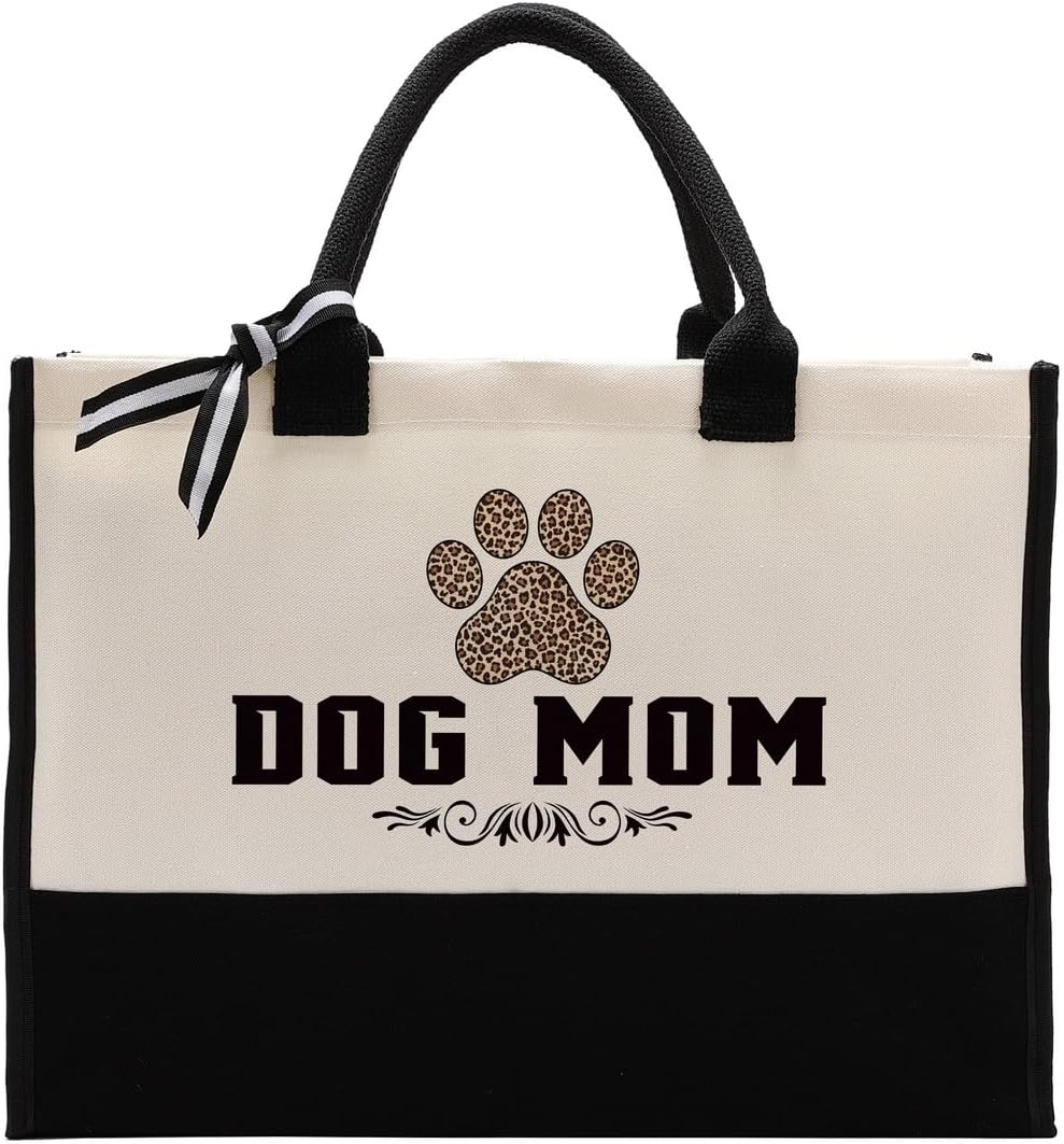 Cotton Canvas Tote Bag for Women - Dog Mom & Pet Lover Gift, Beach & Trip Bag