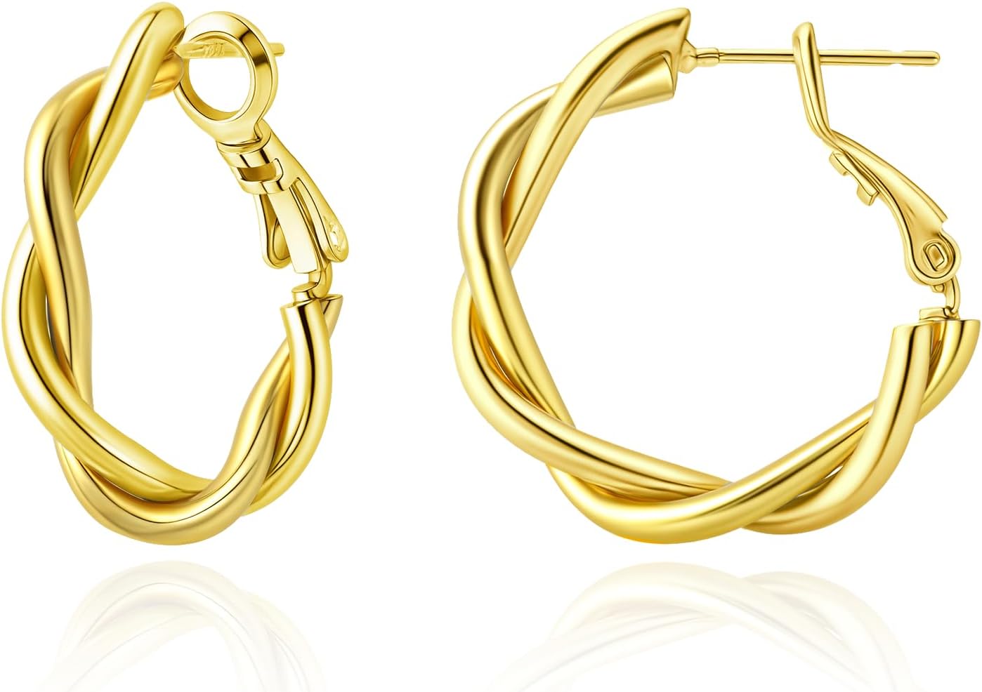 Hypoallergenic Gold and Silver Hoop Earrings for Women, Lightweight Twisted Designed, Mixed Metal with 925 Sterling Silver Post