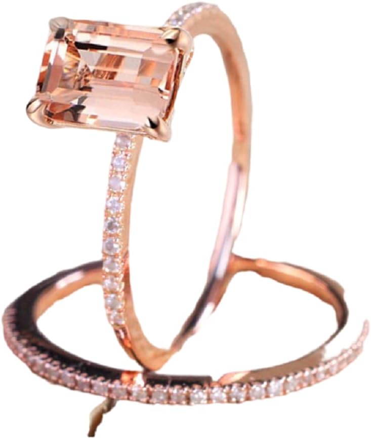 LRGKMCWTOB 18K Rose Gold Filled Morganite Ring Engagement Ring for Men and Women, Exquisite Champagne Color Micro-Inlaid Zircon bar Ring Engagement Bridal Women Jewelry Set Size 6-10 (US 7)
