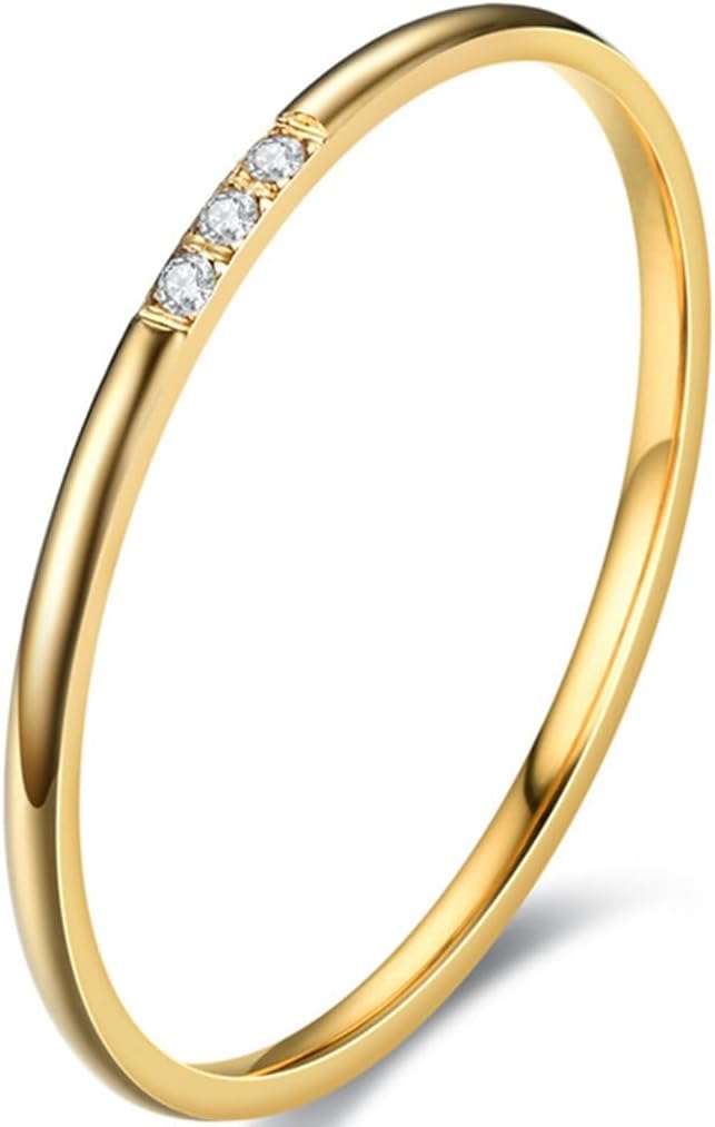 Jude Jewelers 1mm Stainless Steel Thin Stackable Three Stones Eternity Wedding Band Ring