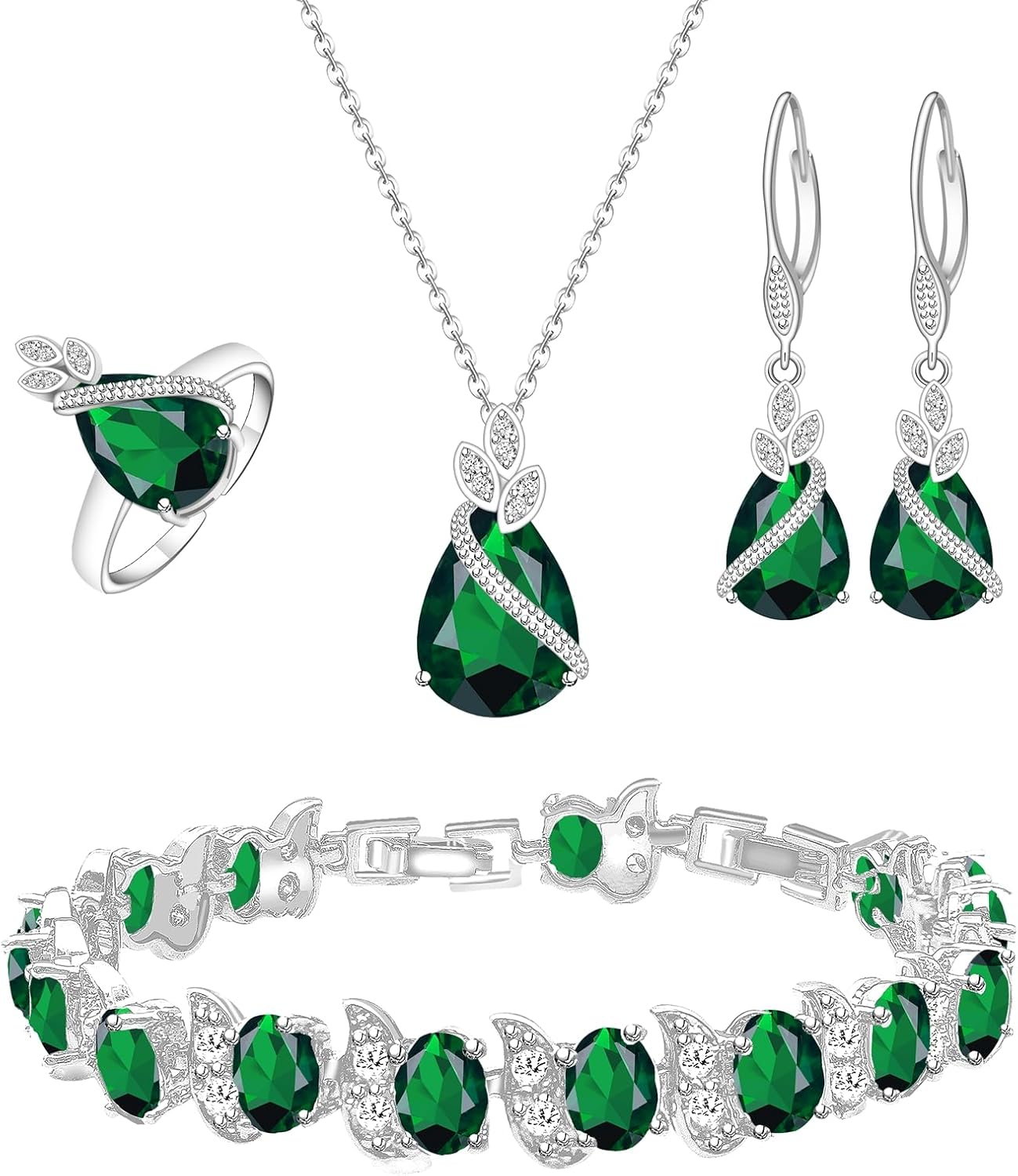 GZWHD Jewelry Set for Women CZ Earrings Necklace Ring Bracelet Set Prom Party Wedding Jewelry Gift for Mother Friend Wife
