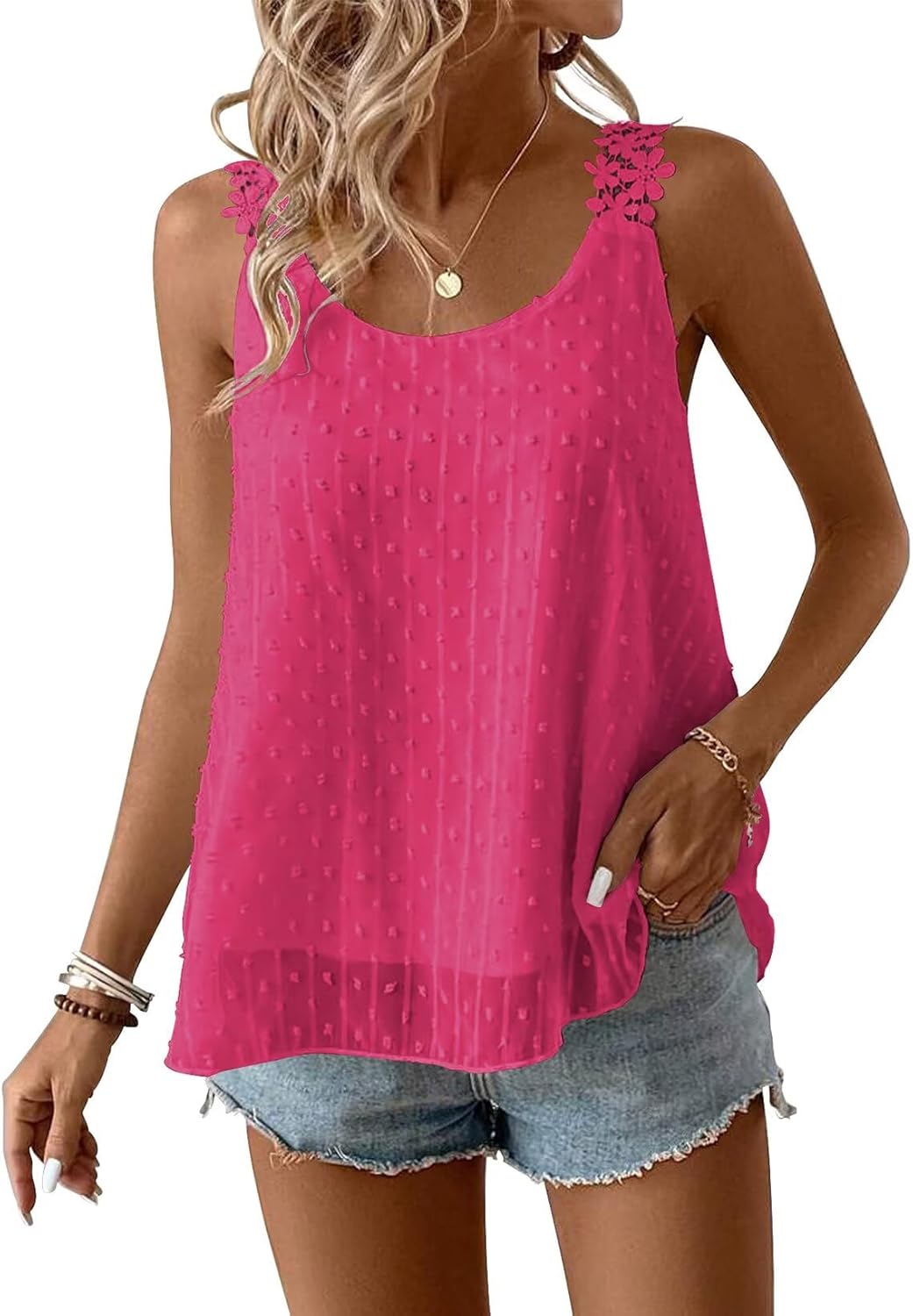 Womens Tank Tops Flowy Sleeveless Summer Boho Tank Top for Women Casual Crewneck Strap Lace Camisole Shirts